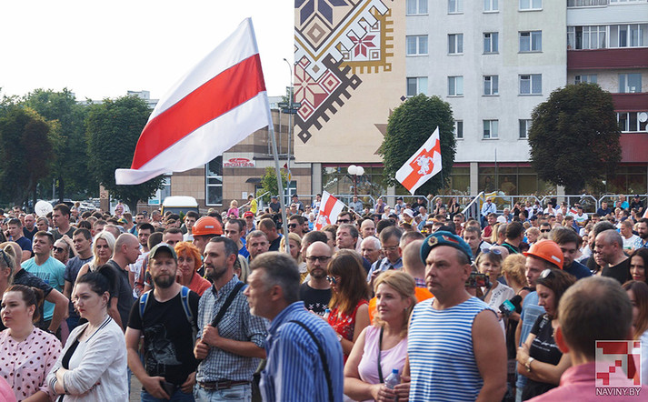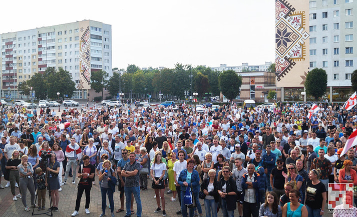 на центральной площади Солигорска многолюдно. Здесь собрались шахтеры. С 17 августа они объявили бессрочную забастовку.