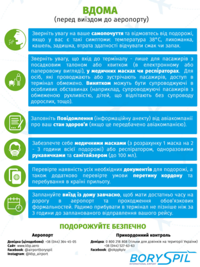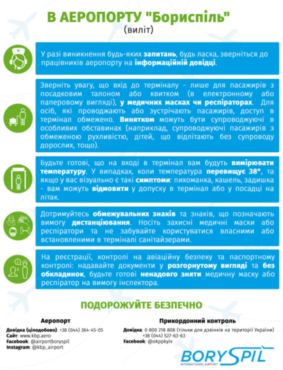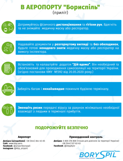 Международный аэропорт «Борисполь» сообщил: с 14 июня 2020 года все рейсы будет обслуживать в терминале D. В аэропорту призывают пассажиров заранее ознакомиться с правилами аэропортов вылета и прилета, а также правилами пересечения границы и требованиями к пребыванию в стране прилета.