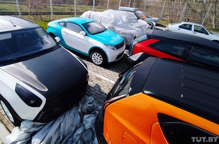 В Минске на служебной стоянке одного из производственных цехов журналисты нашли девять российских «автомобилей будущего», которые разрабатывались под названием «Ё-мобиль».