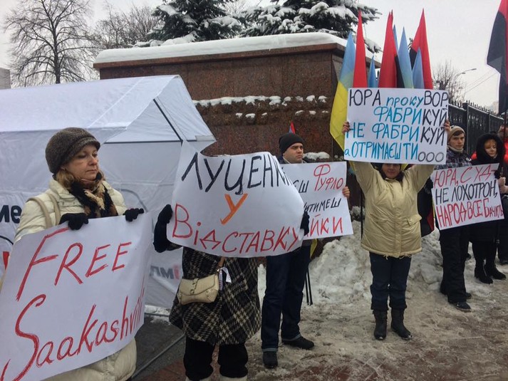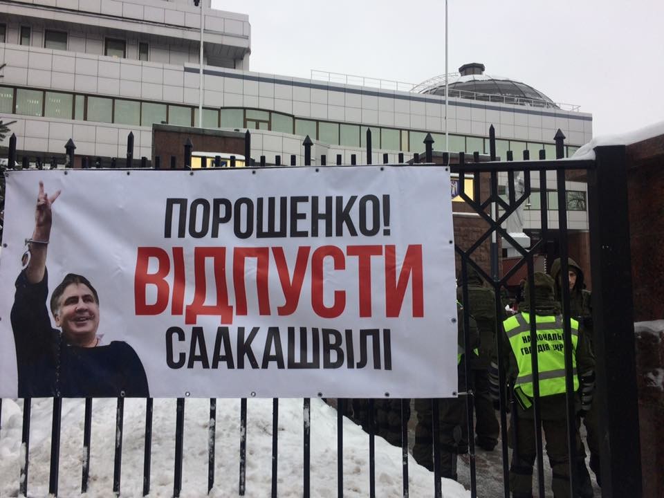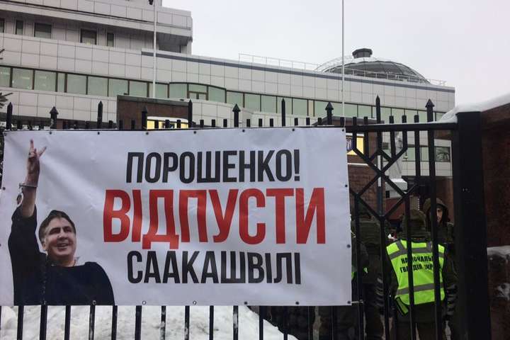 Под зданием Апелляционного суда Киева собрались сторонники Саакашвили с плакатами в его поддержку.