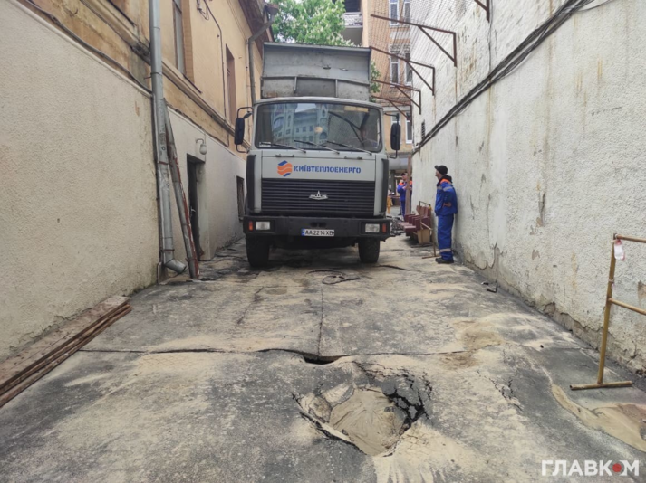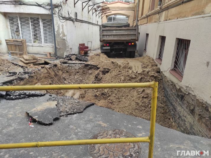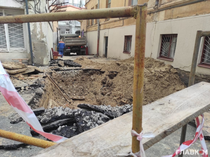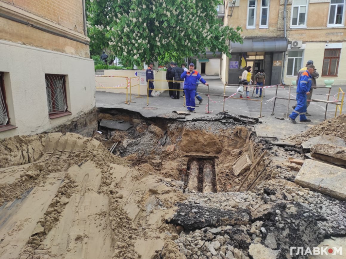 Авария в центре Киева: на месте прорыва вырыли огромный котлован (фото)