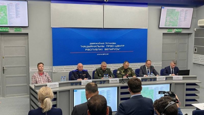 Отмечается, что сначала белорусский МИД анонсировало, что в пресс-конференции примет участие департамент авиации Министерства транспорта, Следственный комитет, Минобороны, пограничники и «другие релевантные спикеры», но за считанные минуты до начала в зал занесли табличку с именем Романа Протасевича, извинились за задержку и объяснили, что в последний момент, «он захотел принять участие».