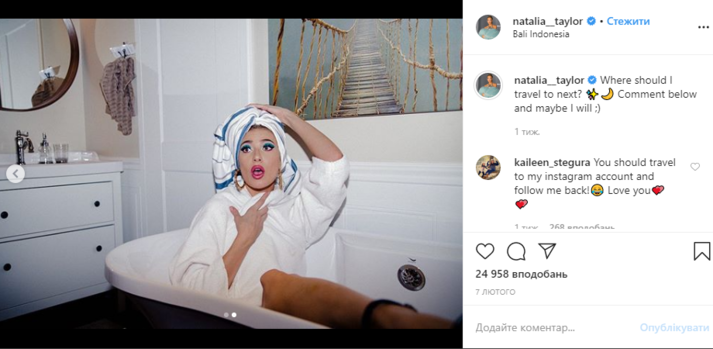 Известная блогерка Наталья Тейлор опубликовала в Instagram фотографии и сториз якобы своего отдыха на Бали. На самом деле все фото были постановочными, Наталья сделала их в магазине Ikea. Таким образом она хотела показать своим подписчикам, что нельзя верить всему в интернете.