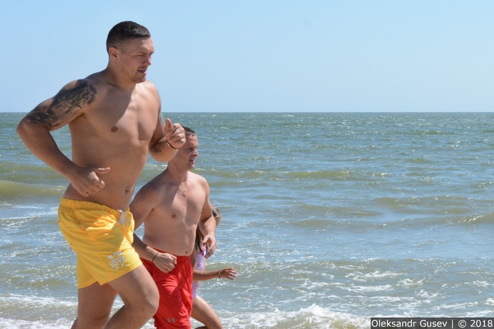 «Лежу, значит, я [загораю] под солнцем, когда тут на меня внезапно падает немаленькая тень. Поднимаю шляпу ... Первое, что увидел, - черные носки с надписью Usyk. Тю, думаю, кто это в носках на пляж вышел? Поднимаю голову выше и тут на тебе, оказывается, на соседних лежаках отдыхают Усик с Ломанченко, поднялись и побежали вдоль пляжа», - написал фотограф в Facebook.