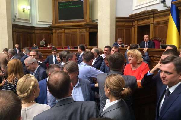 В результате народные избранники заблокировали трибуну Рады и отказались рассматривать вопрос о снятии неприкосновенности с нардепов, пока Луценко не прибудет в сессионный зал.