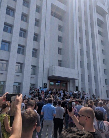 Протестующие вышли на улицы и площади после ареста местного губернатора Сергея Фургала, которого обвиняют в покушениях на убийство и убийствах на Дальнем Востоке в 2004 - 2005 годах.