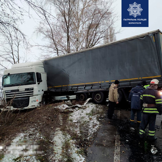 ДТП под Борисполем: на скользкой дороге встретились два лекговика и фура