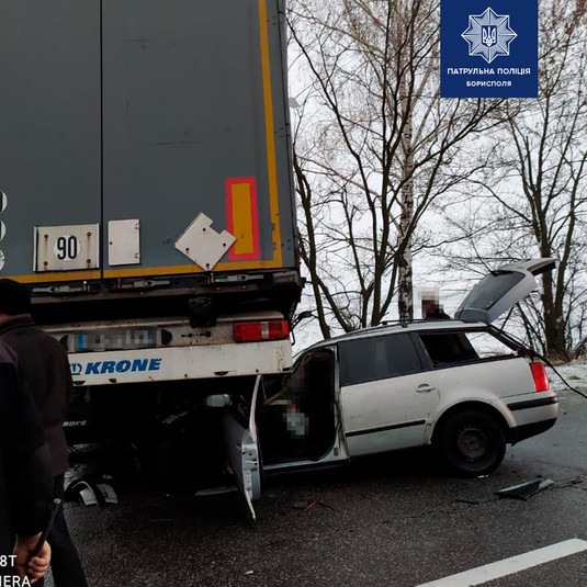 В 15 километрах от Борисполя в Киевской области 2 декабря в 7 утра на трассе произошла авария с участием фуры и двух легковушек.