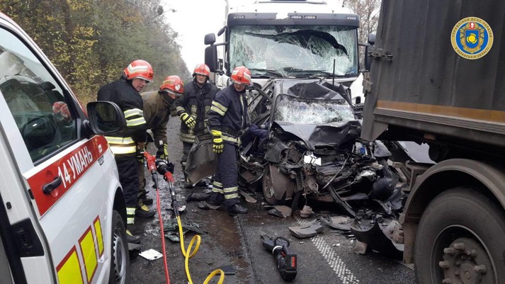 «Трагедия произошла около 08:00 утра 24 ноября на 545 км автодороги Стрый – Тернополь – Кропивницкий – Знаменка. Водитель грузового автомобиля Scania въехал в припаркованную автоколонну. От удара Ford Transit отбросило на левую обочину, в кювет. Столкновение не остановило грузовик – авто ЗАЗ Vida зажало между двумя «фурами», – говорится в сообщении правоохранителей.