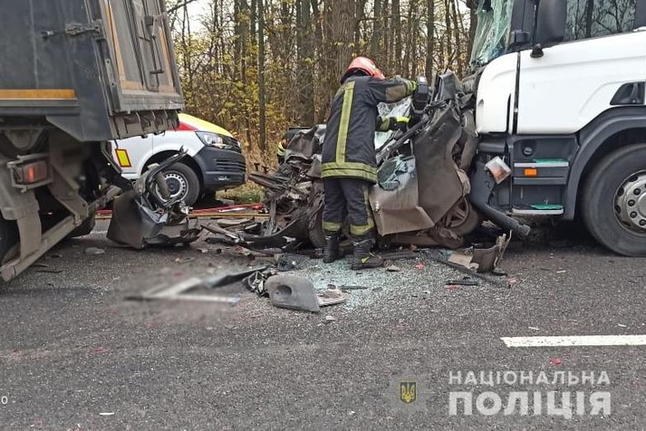 Под Уманью произошла смертельная авария – два грузовых автомобиля зажали легковой. Два человека, включая ребенка, погибли.