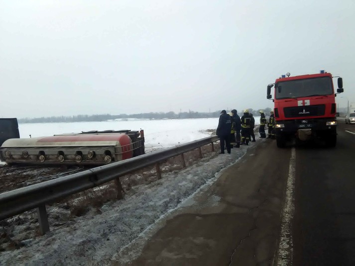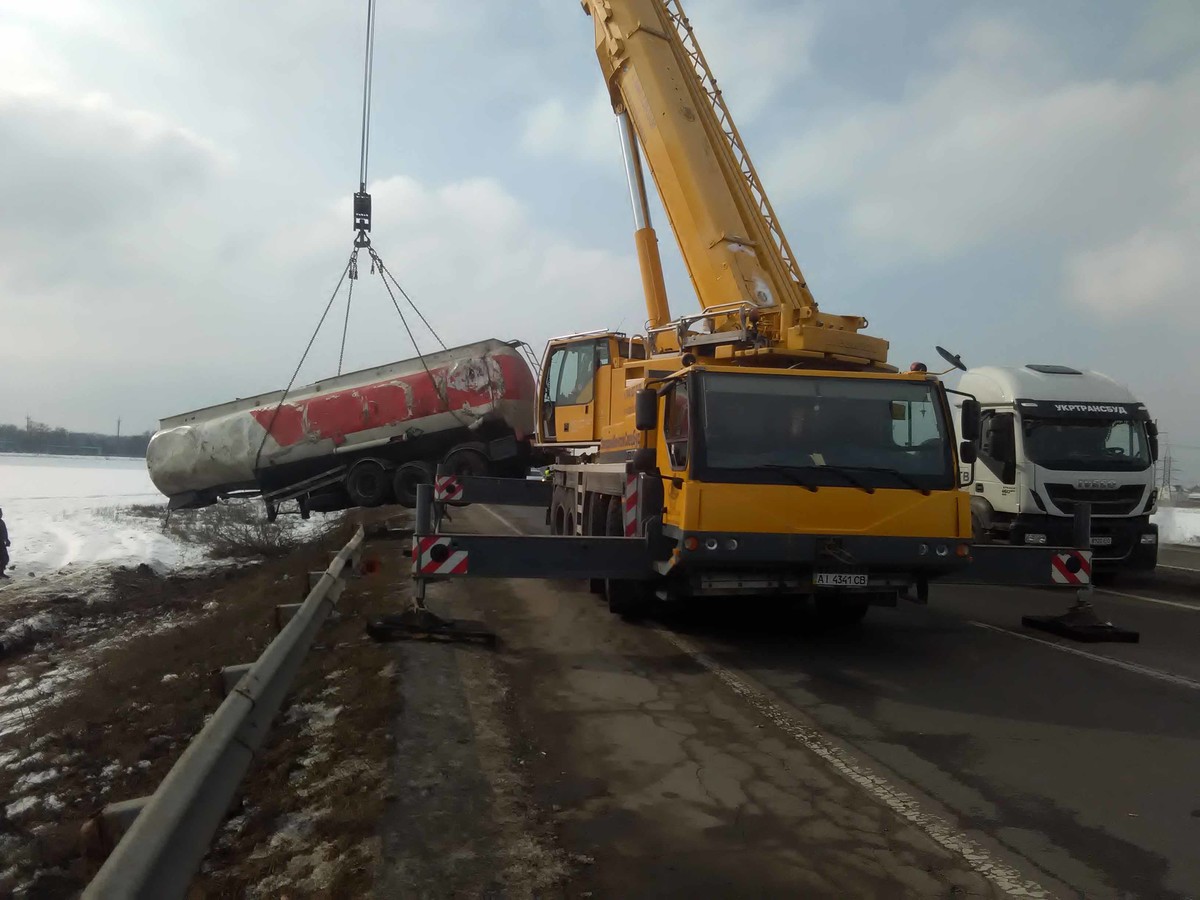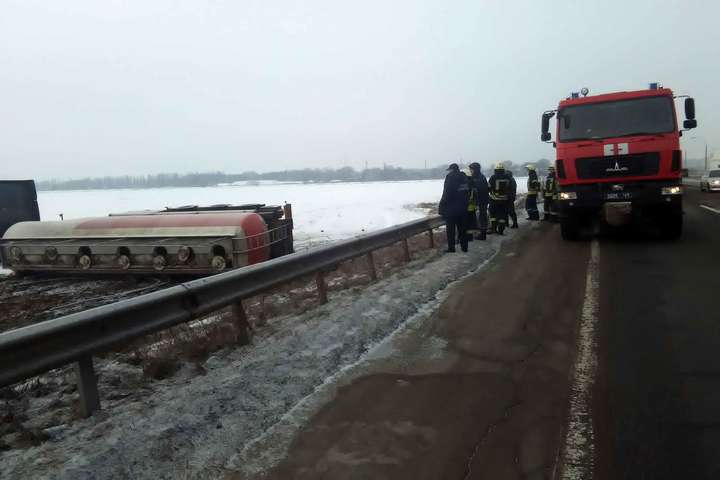 На Киевщине в результате ДТП перевернулась автоцистерна емкостью 30 тонн, в которой перевозился этиловый спирт.