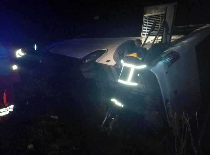 На автодороге Киев-Чоп перевернулся автобус, который перевозил на соревнования в Сербию 38 членов команды сборной Украины по самбо.