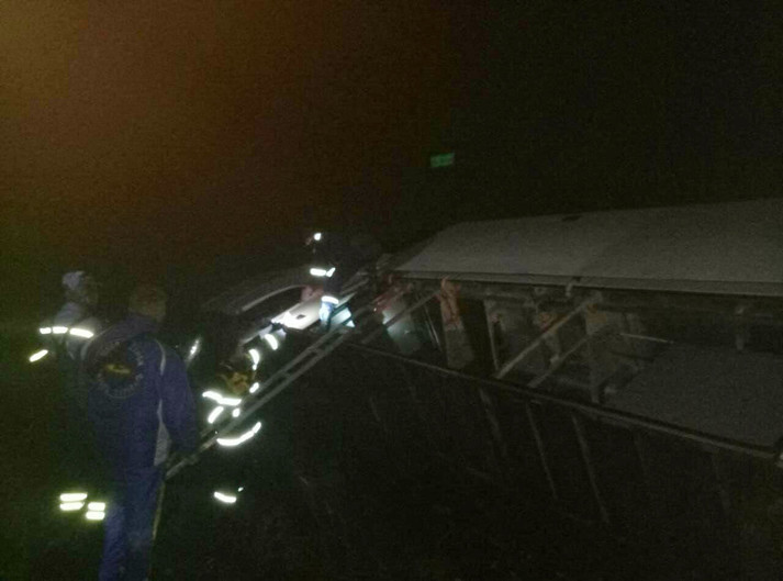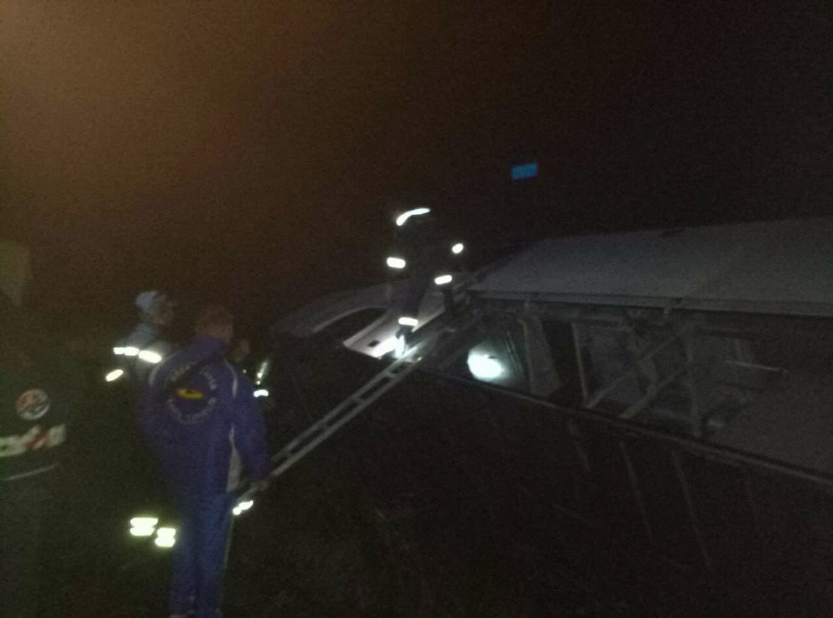 По предварительным данным, водитель автобуса Mercedes Irizar не справился с управлением и допустил его опрокидывание в кювет.