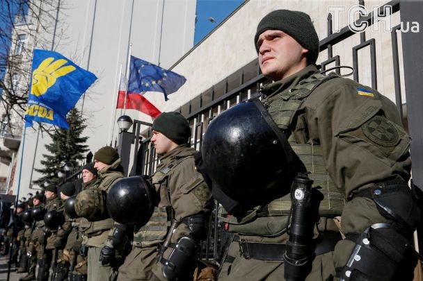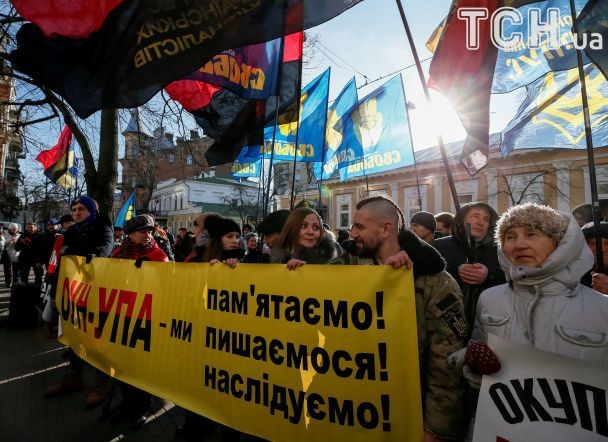 Активисты, которые в понедельник, 5 февраля, пикетировали посольство Польши в Киеве, передали дипломатам заявление против принятого польским Сеймом и Сенатом закона о запрете так называемой «бандеровской идеологии».