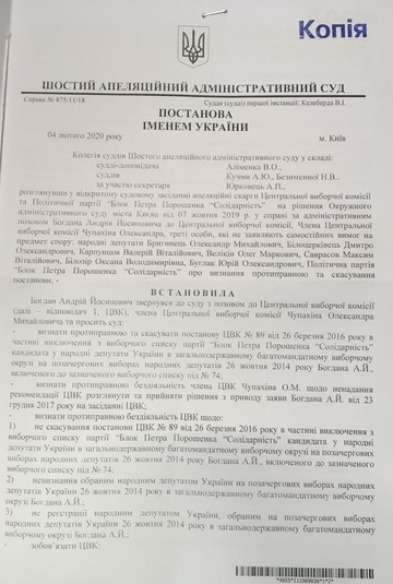 Дело касалось законности исключения Андрея Богдана из списка кандидатов в нардепы от БПП