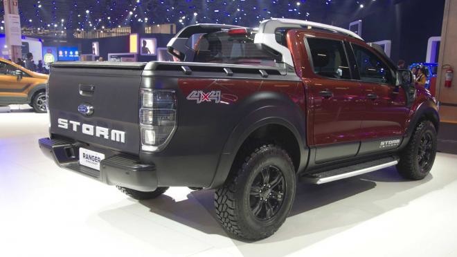 Ranger Storm, судя по всему, является претензией на внедорожный пикап. У него пластиковые черные накладки на бамперы и двери, расширители арок и шноркель для бродов, коих в Бразилии в изобилии. Рейлинги на крыше и бортах кузова предполагают, что потребуется крепить груза куда больше, чем влезет в грузовой отсек.