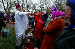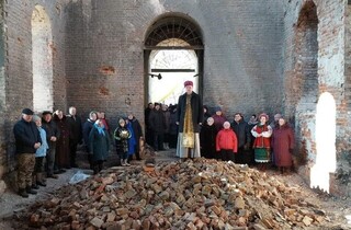 Фото дня. Жители села на Черниговщине пришли посвятить паски в разрушенную церковь