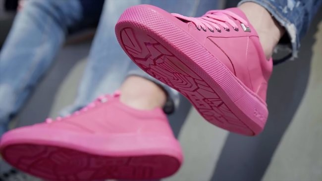 Как сообщается, синтетический каучук, полученный из переработанной жвачки, поставляется на производство в виде гранул, которые затем переплавляются в подошву.