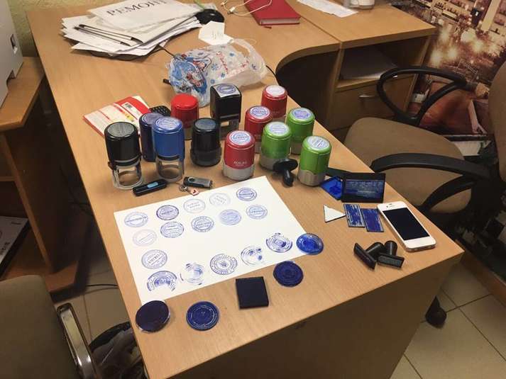 Во время обысков по месту жительства соучастников преступной группы и в офисных помещениях изъяты бухгалтерские документы и черновые записи, подтверждающие противоправную деятельность, поддельные печати органов государственной власти и печати предприятий с признаками фиктивности, нерезидентов, штампы и печати нотариусов.