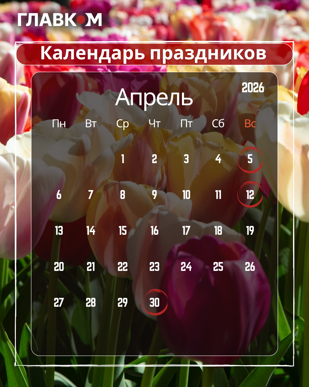 «Главком» публикует актуальный перечень праздников и производственный календарь на апрель 2026 года.