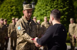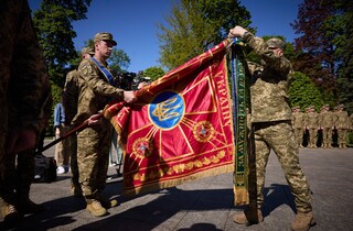 Кроме того, почетное отличие «За мужество и отвагу» получили три воинские части Сухопутных войск ВСУ: 10-я отдельная горно-штурмовая бригада «Эдельвейс», 14-я отдельная механизированная бригада имени князя Романа Великого и 56-я отдельная мотопехотная Мариупольская. Глава государства вручил командирам воинских частей ленту в их боевые флаги.