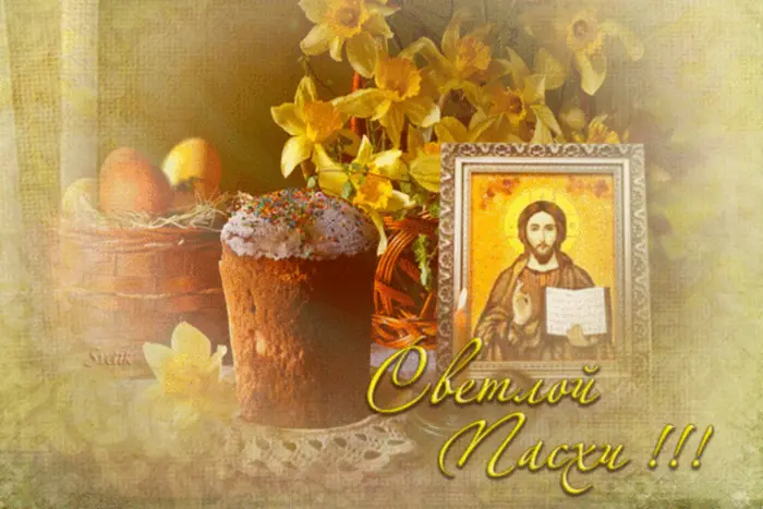 Христос Воскрес. Я поздравляю тебя с Пасхой и от чистого сердца хочу пожелать освободить свою душу от тревог, обид и печалей, стать добрее, увидеть этот мир по-новому, полюбить свою жизнь ещё сильней. Здоровья тебе и простого человеческого счастья.