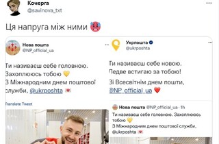 Два крупнейших почтовых оператора в Украине – «Укрпочта» и «Новая почта» – обменялись поздравлениями с профессиональным праздником – Международным днем почтовой службы. Эти взаимные иронические сообщения в Twitter-аккаунтах почтовых операторов тронули украинцев в соцсетях.
