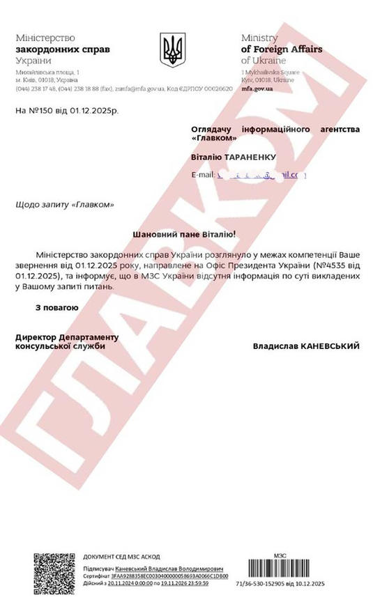 В то же время Офис президента переадресовал запрос «Главкома» Министерству иностранных дел и Государственной миграционной службе. В частности, в МИД сообщили, что не располагают запрашиваемой информацией.
