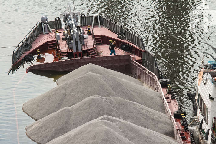 Ожидается прибытие крана для разгрузки судна от щебня.