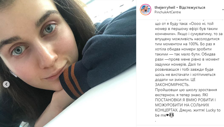 Пройдя эту школу роста экстерном, я теперь знаю, какие постановки я умею делать и могу делать на сольных концертах. Спасибо, жизнь! Lucky to be me ♥ ️» - написала Jerry Heil.