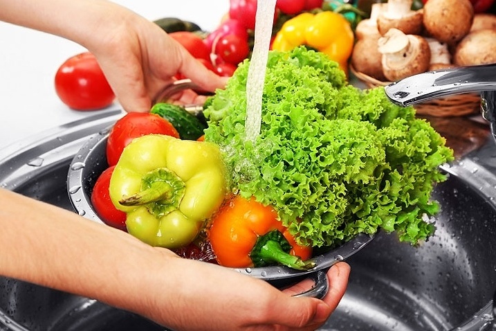 Зелень надо выдержать в горячей пище хотя бы несколько минут. Красные ягоды и виноград промывайте горячей водой под краном в дуршлаге. А вот овощи, наоборот, надо мыть в миске. Сначала погрузить в холодную воду, дать постоять пару минут, чтобы смыть землю. Затем залить горячей водой и почистить щеткой», - советует врач.