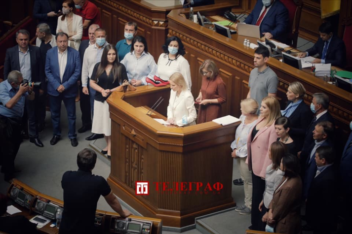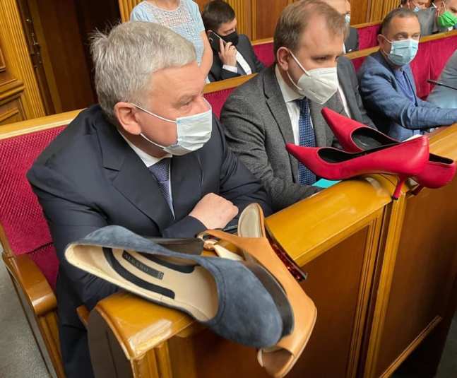 Депутаты подарили Тарану и Зеленскому туфли на каблуках (фото)