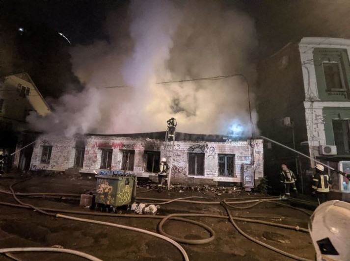 Крупный пожар на Лукьяновке: сгорел старинный дом (фото, видео)