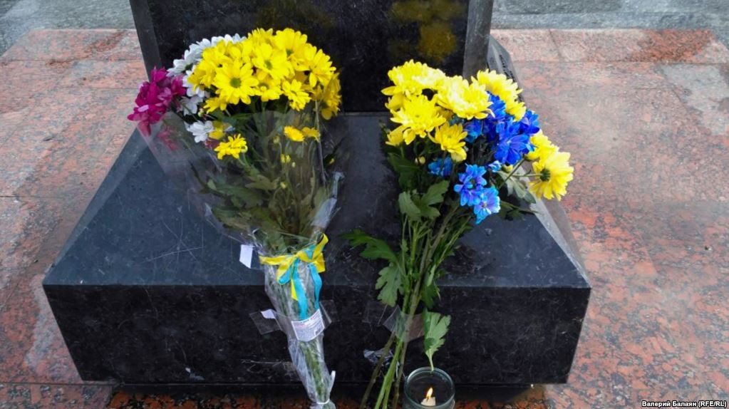 В частности, крымчане принесли букеты, выполненные в цветах украинского флага.