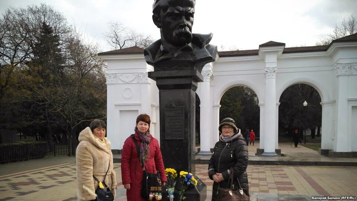 «Я считаю, что мы тут сейчас не нарушаем законов России. У нас есть потребность прийти в День Соборности к памятнику Шевченко. Мы принесли цветы, постояли...» – говорит представитель Украинского культурного центра в Крыму Алена Попова.