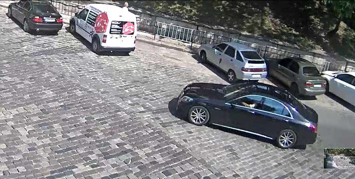 На видео видно, что кортеж Дыминского выехал от Львовской ОГА, где расположен офис ФК «Карпаты», в 14:29. За рулем Mercedes S 65 AMG с государственным номерным знаком АС0277ВР находился мужчина в белой рубашке с коротким рукавом.
