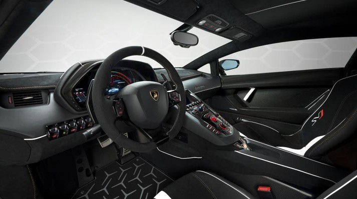 Для Aventador SVJ предусмотрено три стандартных режима движения (Strada, Sport и Corsa) и опциональный режим EGO для индивидуальной настройки автомобиля. В интерьере салона внимание привлекает приборная панель с цифровым дисплеем TFT и графикой Kombi, на который в режиме реального времени выводится информация о системе ALA.