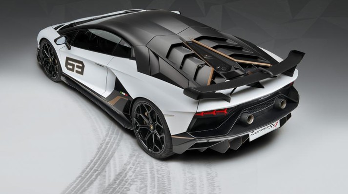 Крышка расположенного в задней части автомобиля двигателя получила новый, разработанный специально для SVJ дизайн. Она изготовлена из легкого углеволокна и, как у гоночных болидов, фиксируется при помощи защелок быстрой фиксации. Элементы крышки моторного отсека также выполнены в форме буквы "Y". Такой дизайн позволяет видеть обновленный двигатель V12 и подчеркивает потрясающую мощность и динамику суперкара. Сверхлегкие алюминиевые колесные диски "Nireo" были созданы специально для версии SVJ, они также способствуют снижению общей массы и максимальному улучшению динамики автомобиля. Для этой модели опционально доступны диски модели "Leirion", также изготовленные из алюминия, – в их дизайне обыграны формы буквы "Y" и фирменных шестиугольников Lamborghini. Итальянский флаг на боковом закрылке напоминает о наследии и традициях итальянского бренда.