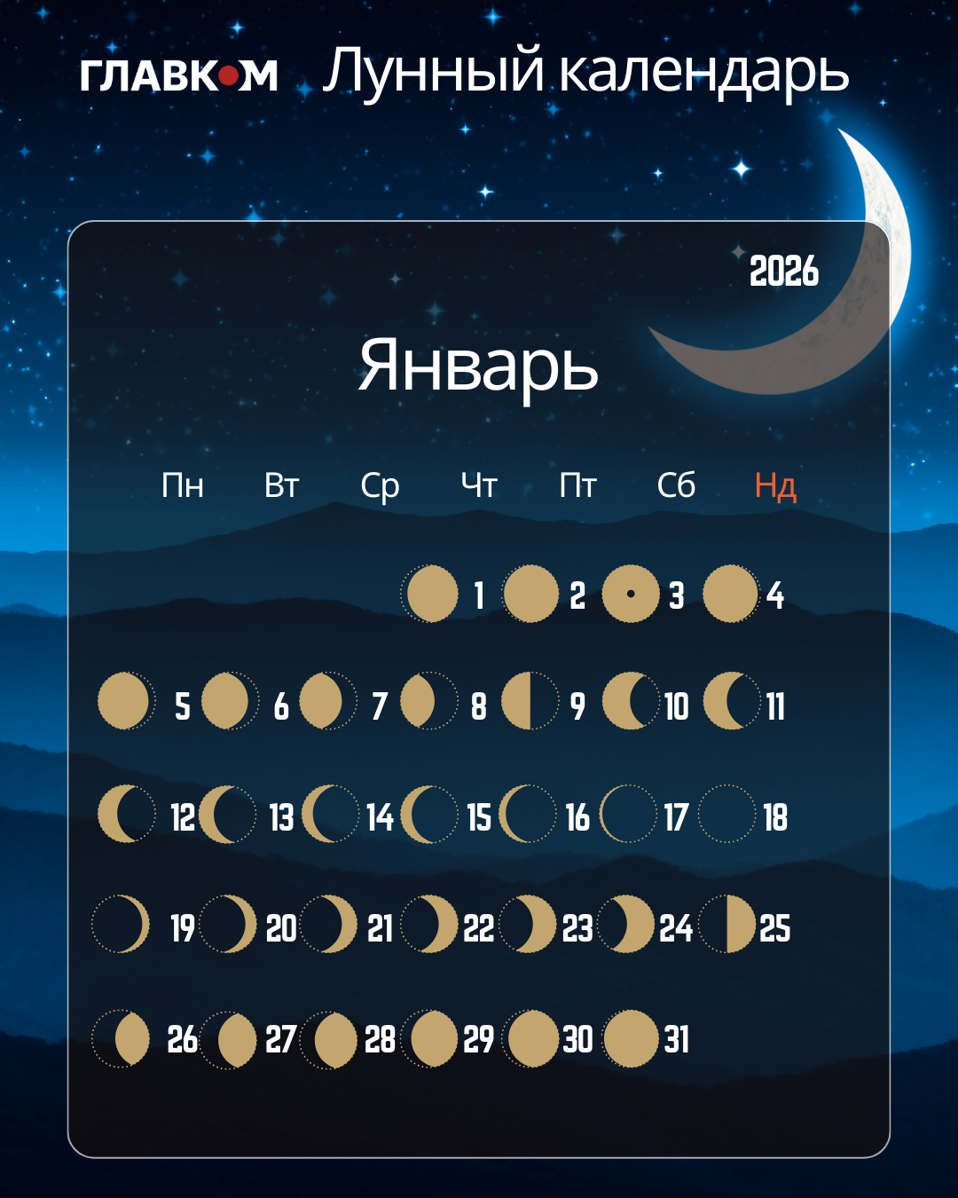 Лунный календарь на январь 2026