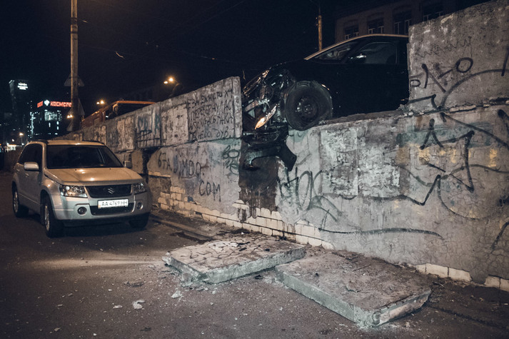 По словам водителя Citroen, он двигался по Шулявскому мосту в сторону Караваевых дач. В этот момент навстречу ему вылетел Opel, зацепил его автомобиль и врезался в Mercedes Smart. От удара Citroen занесло и он сбил ограждение моста и чуть не вылетел с него.