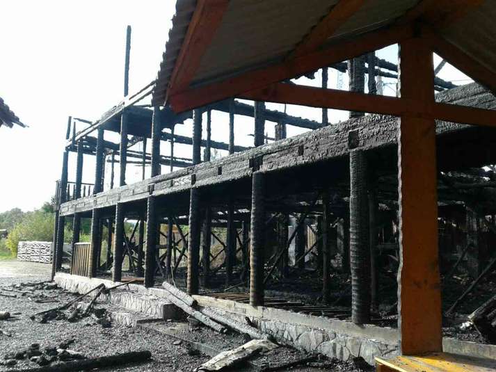 В поселке Солотвино на Закарпатье сгорела база отдыха.