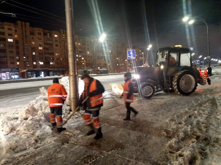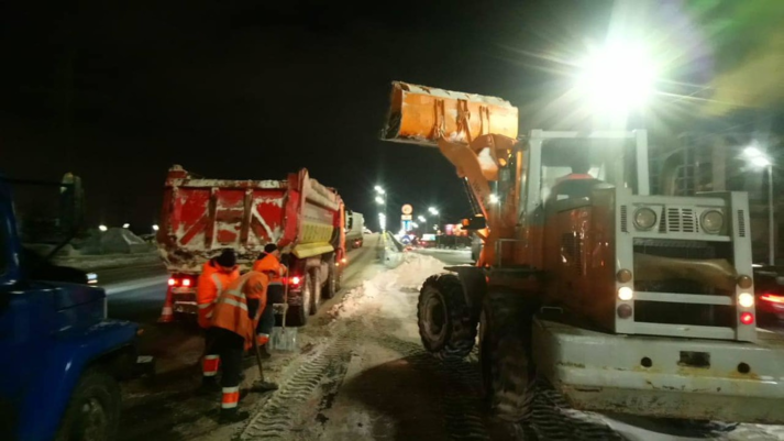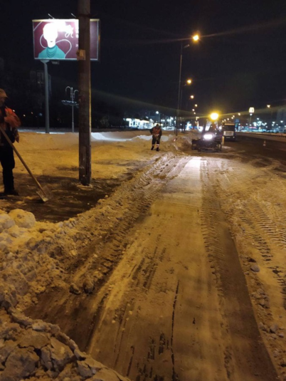 Ночью над очисткой от снега и обработкой улиц и тротуаров противогололедными средствами работали 304 единицы транспорта, а также 40 бригад по ручной уборки.