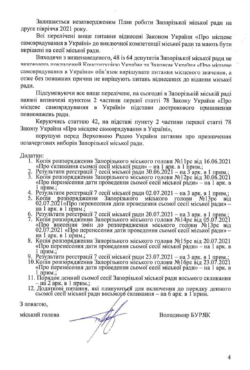 Мэр Запорожья Владимир Буряк официально обратился в Верховную Раду с пакетом документов о досрочном роспуске Запорожского городского совета. Об этом сообщил нардеп Александр Качура.