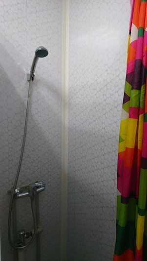 В квартире разместили бойлер, плиту для приготовления пищи, батарею, стиральную машину, душ и туалет. Также в нее втиснули диван и небольшой шкаф. Кстати, в помещении нет ни одного окна.