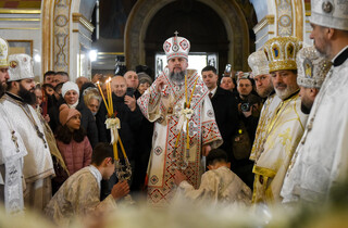 На Рождество, 7 января, произошло историческое событие – наконец-то в Киево-Печерской лавре раздался украинский язык: митрополит Эпифаний провел Богослужение в Успенском соборе. Для первой в истории литургии предстоятеля автокефальной ВТО на территории Киево-Печерской лавры митрополит Эпифаний избрал белые ризы с элементами вышивки.