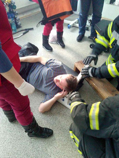 Было установлено, что мужчина 1962 г. р. занимался в тренажерном зале и, выполняя упражнения, накололся головой на металлический крюк тренажера, после чего самостоятельно не мог освободиться.
