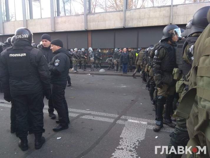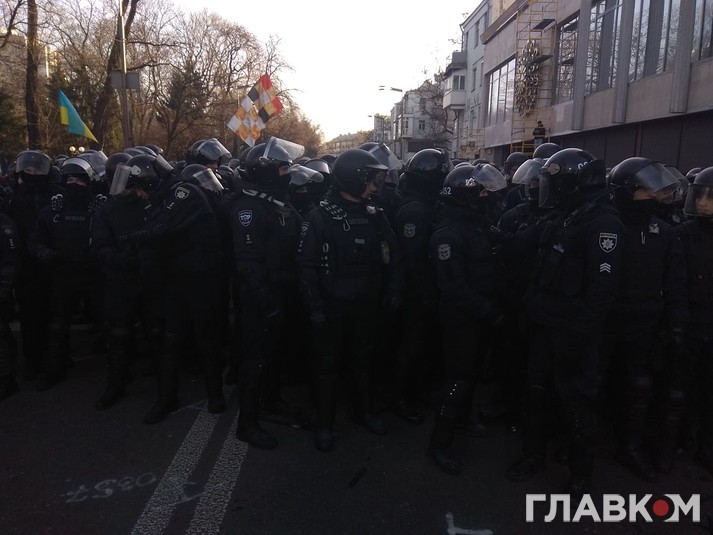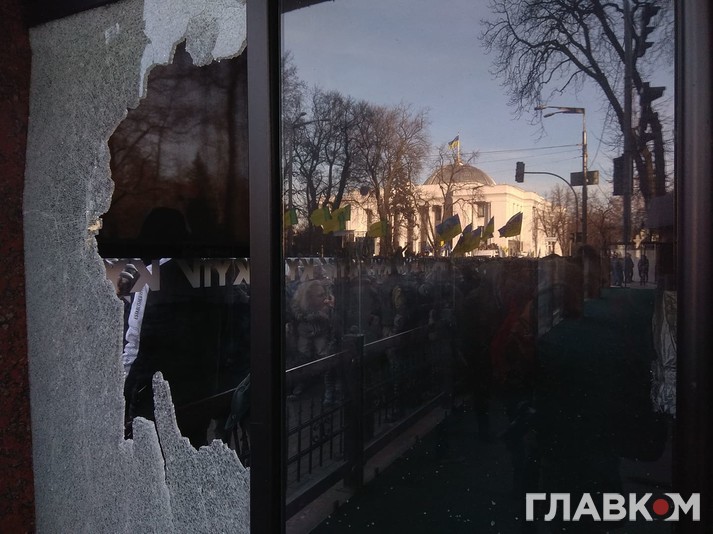 На митинге под Верховной Радой против принятия закона о рынке земли произошли столкновения, в ходе которых пошли в ход газ и зеленка.