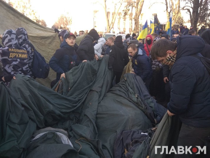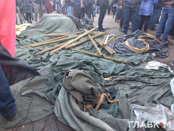 Митингующие хотели установить палатки перед зданием парламента. Полицейские спецназначения спросили у них, есть ли разрешение на установку палаток. Из-за этого произошли столкновения протестующих с правоохранителями. Митингующие облили зеленкой полицейских. Правоохранители взамен использовали слезоточивый газ.