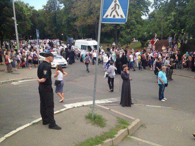 В Киеве в парке Владимирская горка, где в 13:00 состоится молебен УПЦ МП, собралось около 10 тысяч верующих.