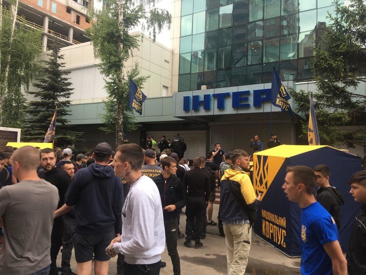 Партия «Национальный корпус», созданная на основе полка спецназначения МВД «Азов», заявила о начале блокировки телеканала «Интер» в городе Киев. Такое заявление размещено в соцсетях.